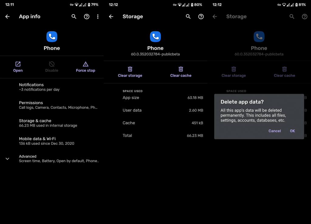 5. Borrar caché y datos de la aplicación Phone/Dialer