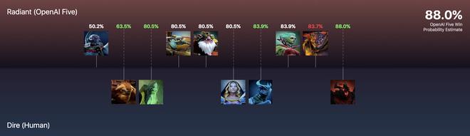 最初の 2 試合の後、OpenAI には非常に不利な 5 人のヒーローが与えられましたが、動きを遅くしたり、驚くような動きをすることはなく、多くのファーミング時間を必要としました。そして、ゲームを開始した直後、OpenAI は勝率がわずか 2.9% であると予測しました。しかし、人間チームが彼らを倒すには30分以上かかりました。