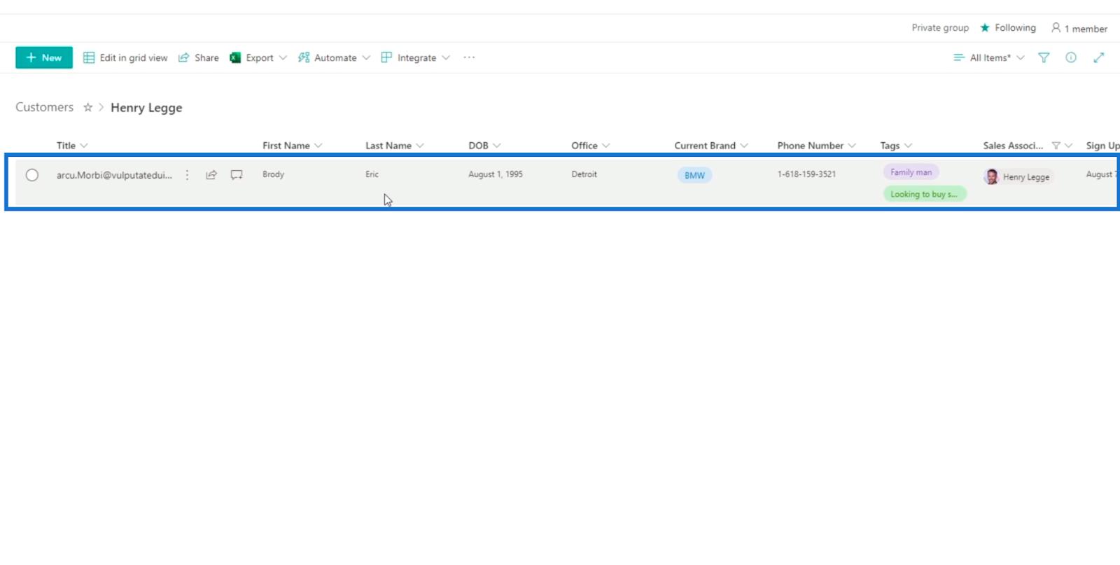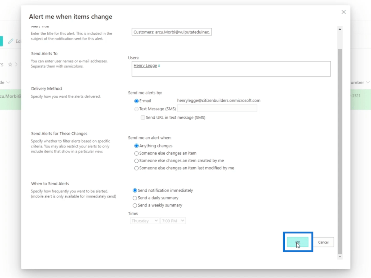 また、これを使用して、リストまたはアイテムに加えられた変更について組織内の他の人に警告することもできます。最初の例では、特定の顧客に関するアラートを受信したいと考えています。したがって、最初に行う必要があるのは、リストをフィルタリングすることです。