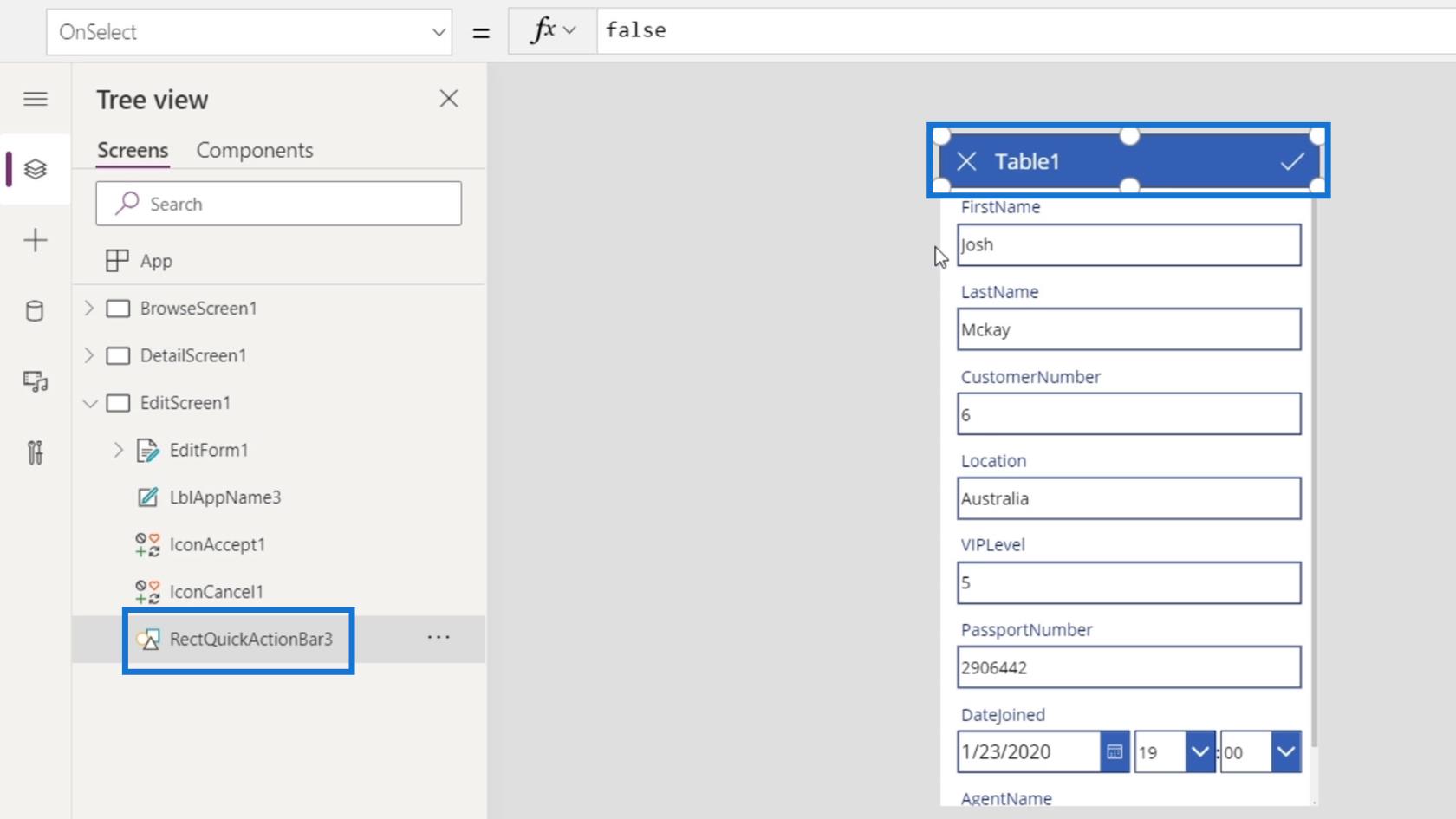 このチュートリアルでは、PowerApps の[編集]画面で実行できるさまざまな操作について説明します。また、 Updateプロパティの仕組みとテキストボックスの使用方法についても理解します。