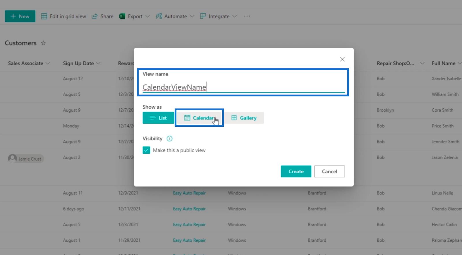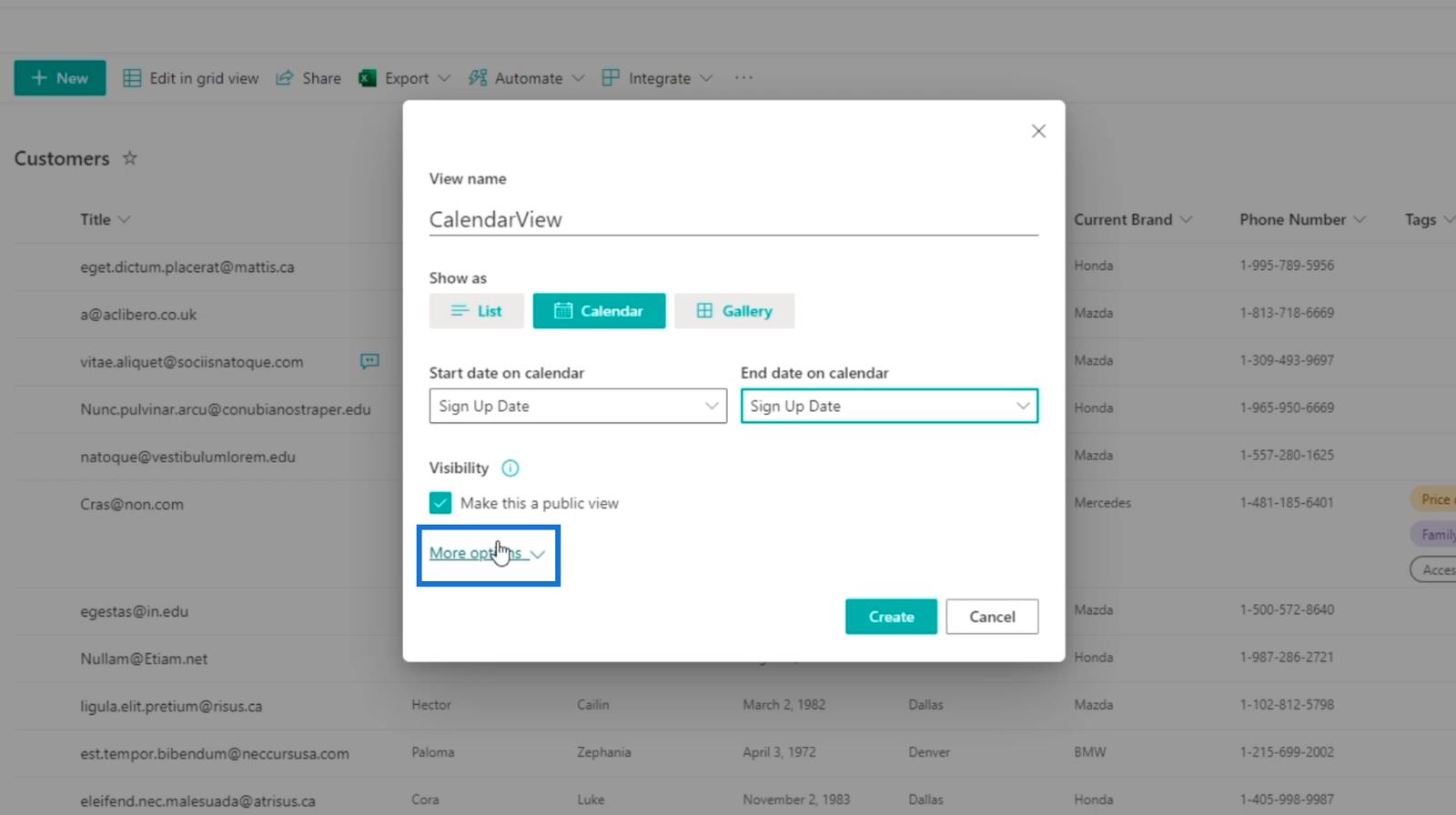 SharePoint リストのカレンダー ビューを作成する前に、SharePoint リストに日付列が関連付けられていることを確認する必要があります。