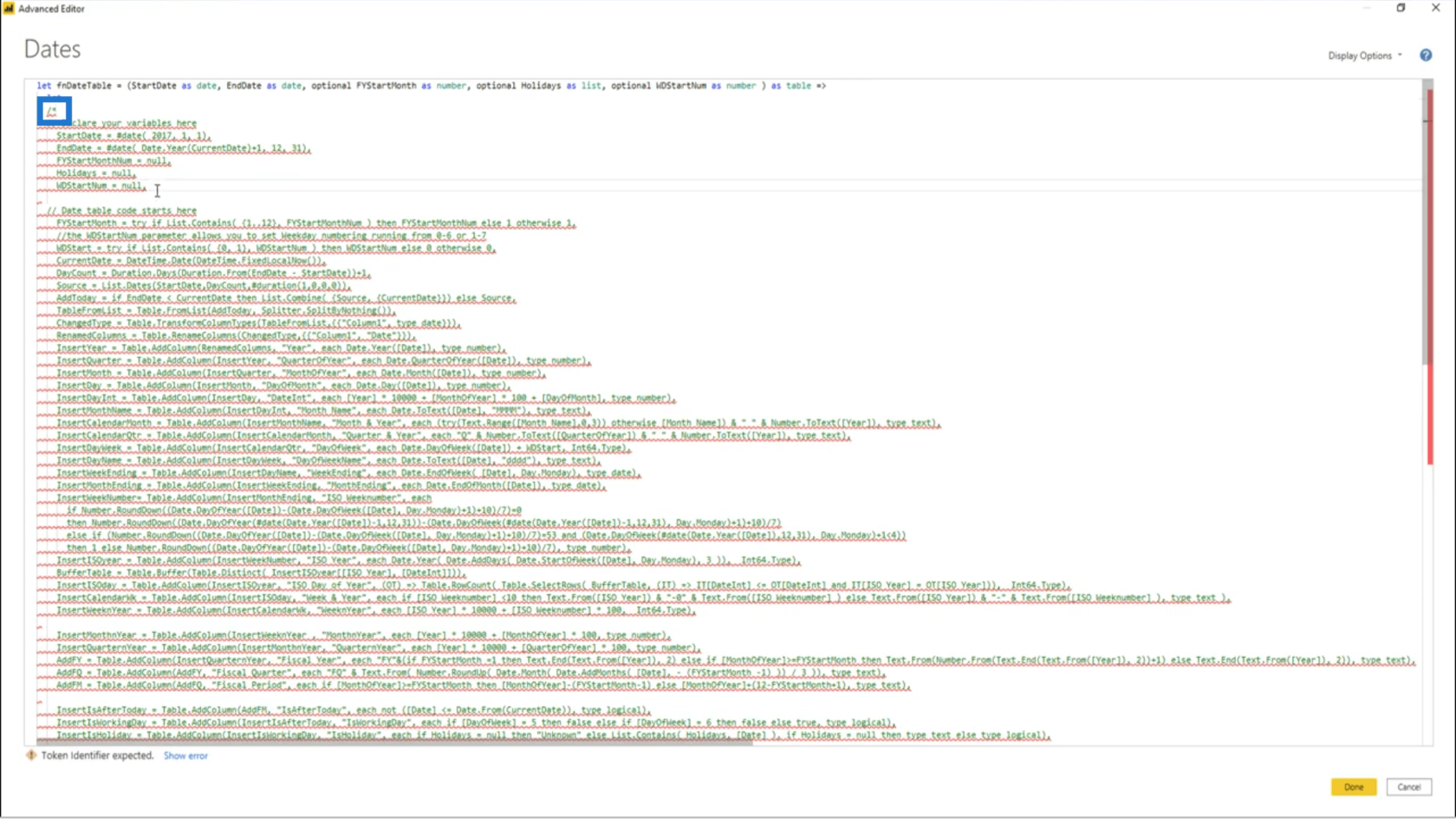 日付テーブルの M コードをテーブル クエリに変換する方法を説明します。このチュートリアルの完全なビデオは、このブログの下部でご覧いただけます。