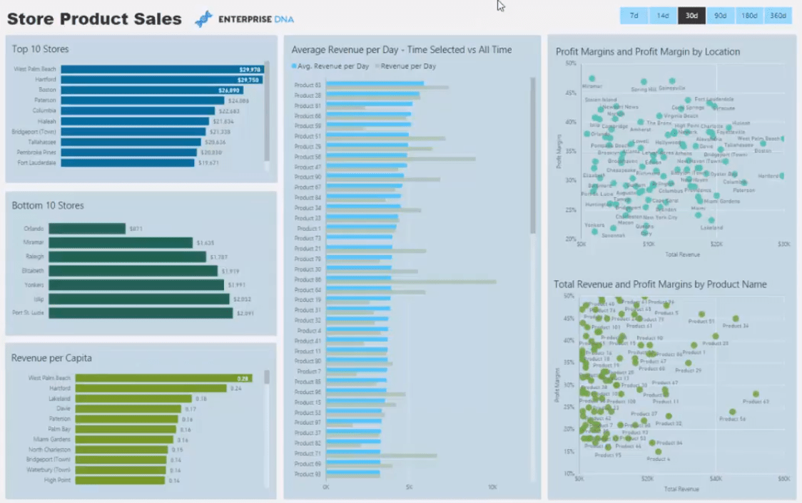 このレポートのユニークな点は、表示したい特定の製品や店舗とともに時間枠を動的に変更できることです。