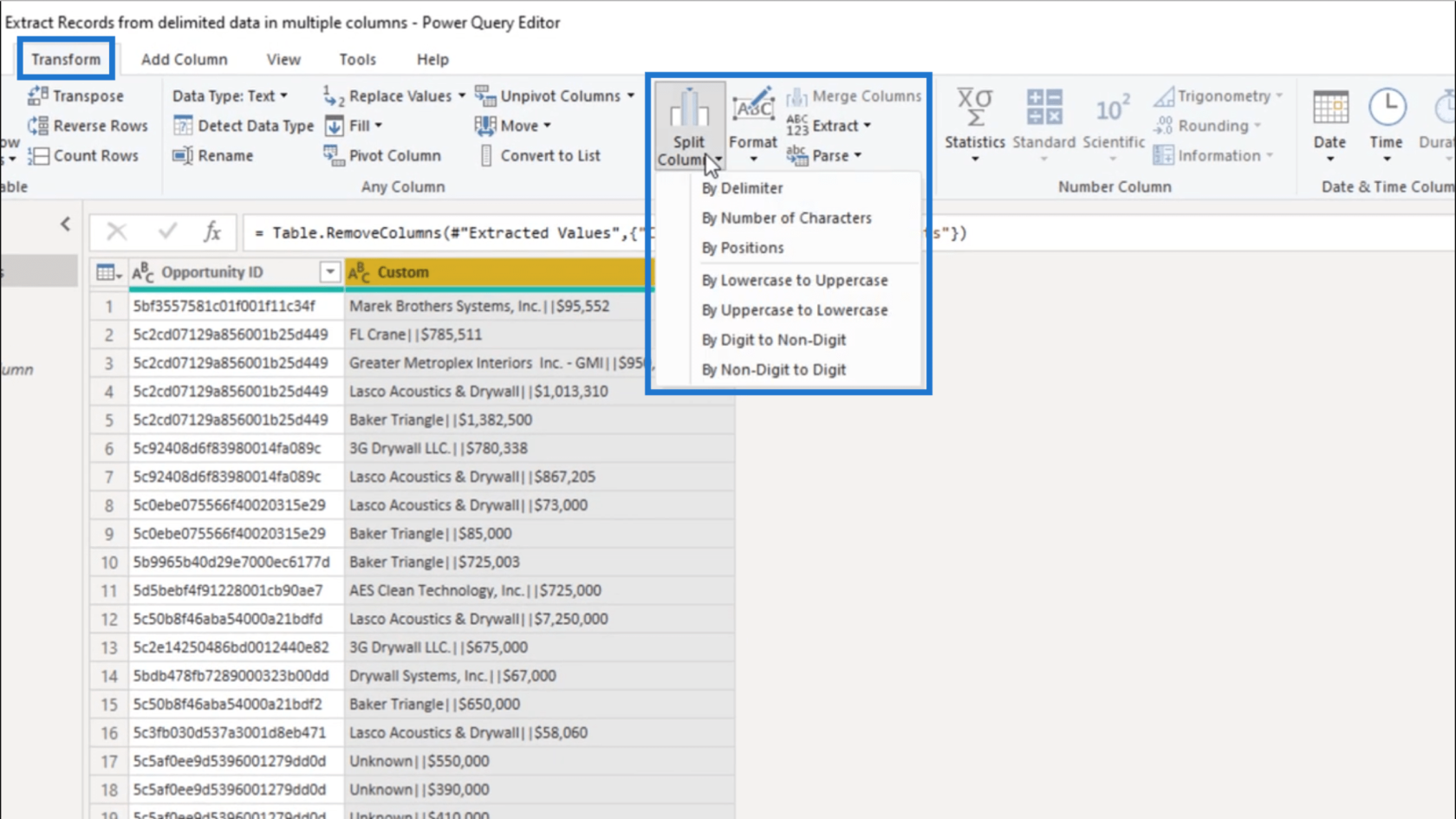 このソリューションでは、 Power Query を使用して区切り文字で区切られたデータからレコードを抽出します。