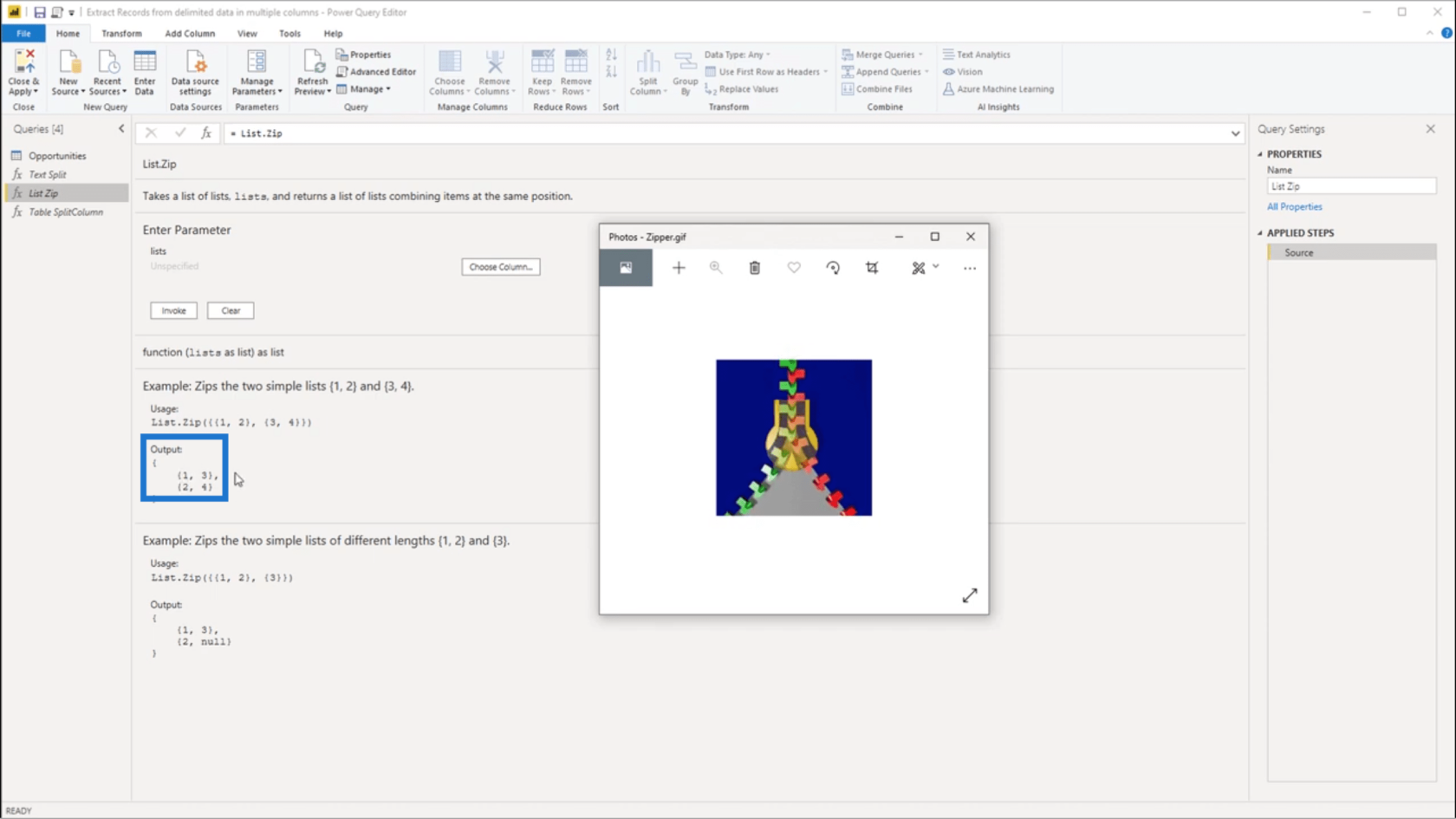 List.Zip の動作を思い出してください。List.Zip は、リストの単一のリストを取得し、それらを結合します。