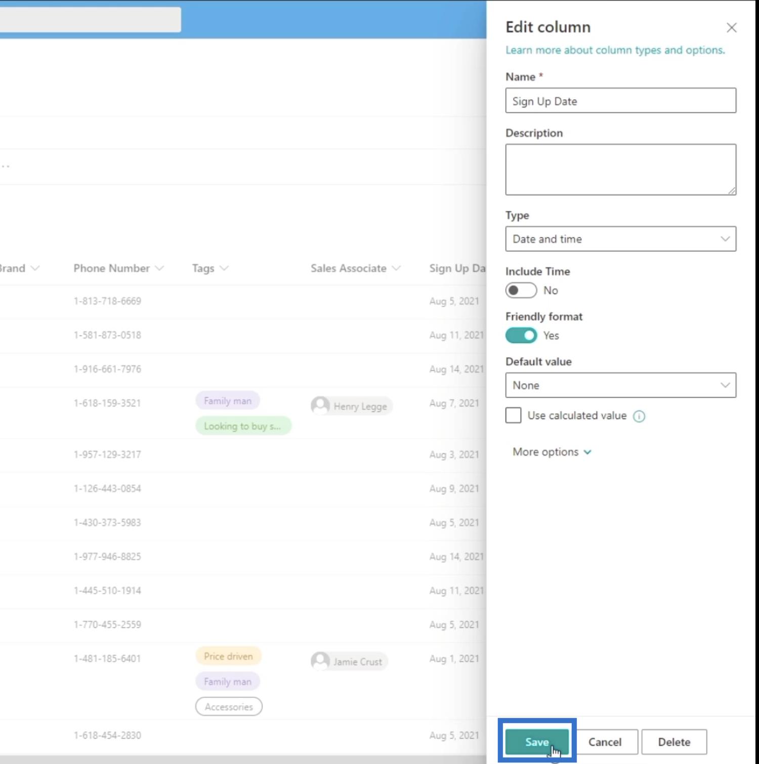 計算フィールド/計算列を編集する唯一の方法はこの方法であることに注意してください。これは、クラシック ビュー設定でのみ計算列を作成できるためです。ただし、[サインアップ日]列はもちろん変更できます。