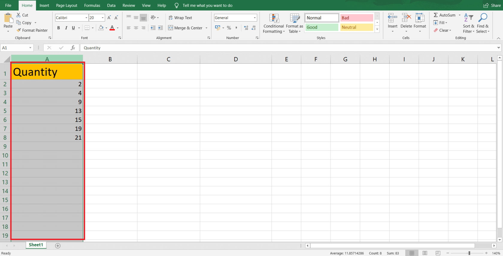 列と行の違いを識別するもう 1 つの方法は、条件付き書式を使用することです。