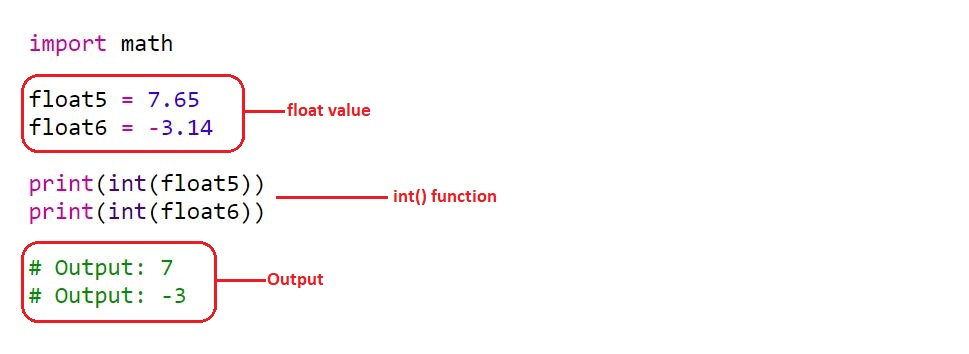 ただし、 int()関数は、符号を考慮せずに数値を切り捨てるだけなので、math.floor()やmath.ceil()と同等ではないことを覚えておくことが重要です。