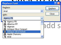[置換]ドロップダウンリストで、置換が必要なフォントを選択します。