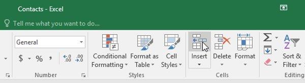 行と列を挿入するときは、ヘッダーをクリックして行または列全体を選択していることを確認してください。行または列でセルを 1 つだけ選択した場合、[挿入]コマンドは新しいセルのみを挿入します。