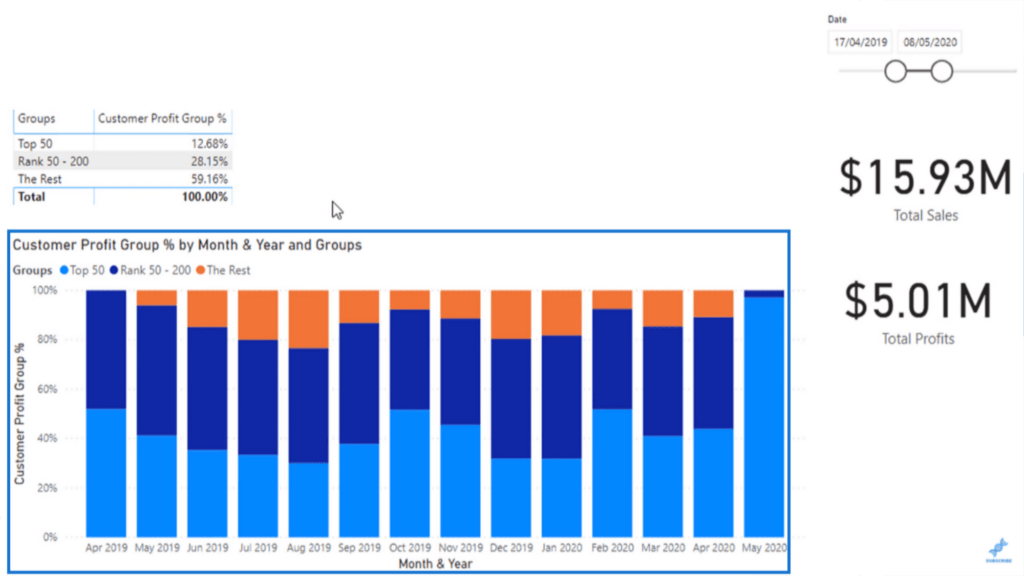 사용하여 추가로 필터링되었습니다 . 이 기능은 Total Profits를 기반으로 모든 고객의 순위를 계산했습니다.