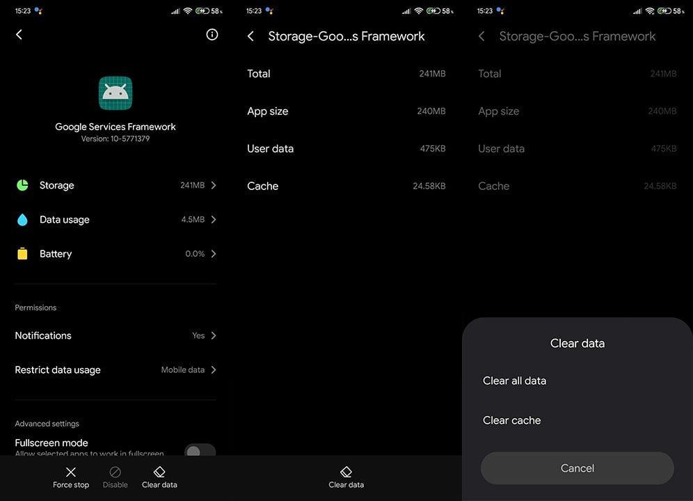 Двигаясь дальше, есть еще одна системная служба Google, которую нам нужно решить, чтобы решить проблему. Google Services Framework является основным компонентом Android и относится ко всем включенным службам.