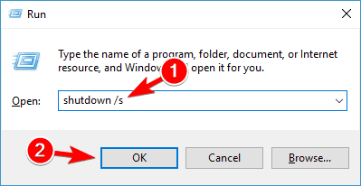 - После этого введите Shutdown/s в поле ввода, а затем просто нажмите Enter или даже нажмите OK .