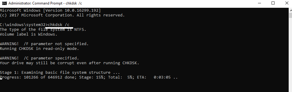 Сломанный жесткий диск также может вызвать ошибку HAL_INITIALIZATION_FAILED на вашем компьютере. Следовательно, вам нужно проверить свой жесткий диск. Для этого вам нужно запустить команду chkdsk. Эта команда сканирует раздел жесткого диска компьютера.