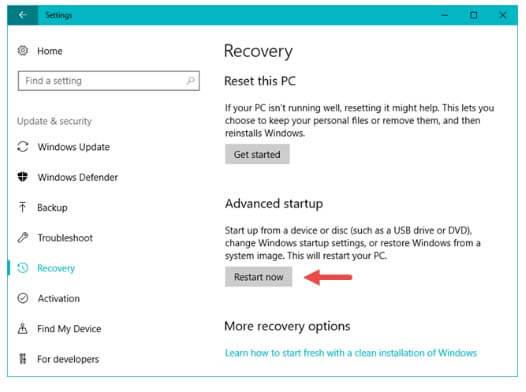 - В разделе « Расширенный запуск » нажмите кнопку « Перезагрузить сейчас ».