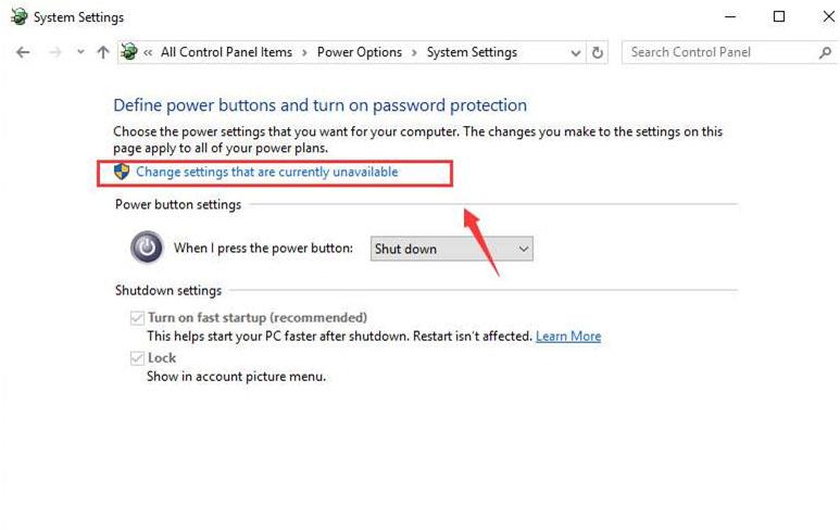 - После этого выберите параметр «Выберите, что делает кнопка питания» >, затем выберите параметр « Изменить настройки, которые в данный момент недоступны» .