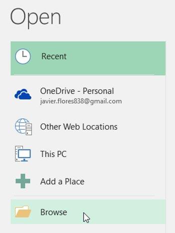 • Если вы недавно открыли нужную электронную таблицу, вы можете просмотреть последние таблицы вместо поиска файла.