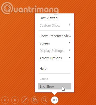 Вы также можете получить доступ к любому из вышеперечисленных пунктов меню, щелкнув правой кнопкой мыши в любом месте экрана во время слайд-шоу.
