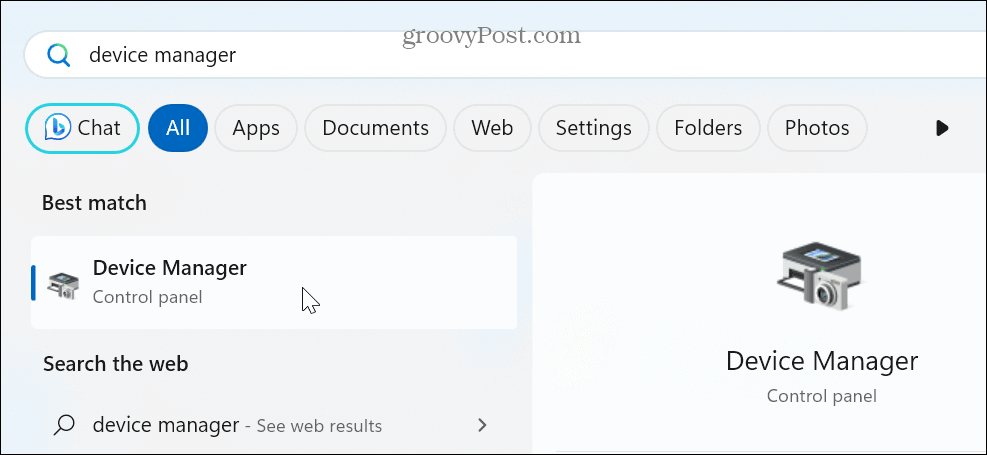 - Нажмите клавишу Windows , выполните поиск в Диспетчере устройств и выберите верхний результат.