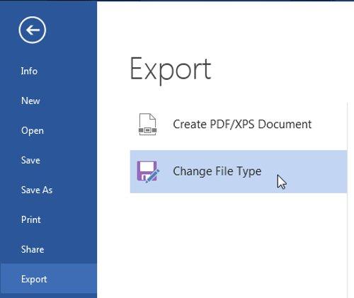 2. 選擇「匯出」,然後選擇「變更檔案類型」