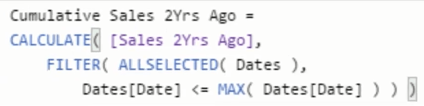現在您已經創建了該時間範圍的累計銷售額,您還可以創建去年和兩年前的累計銷售額。您可以復制和更改之前的度量。