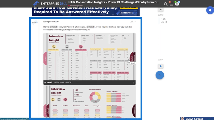 我們收到了令人難以置信的提交,其中一份來自戴安娜,她是我們的活躍成員之一。這是針對我們最近基於HR Consultation Insights 的挑戰。這是一個真正的翻頁器。它將使您能夠像瀏覽一本書一樣直觀地顯示您的報告。