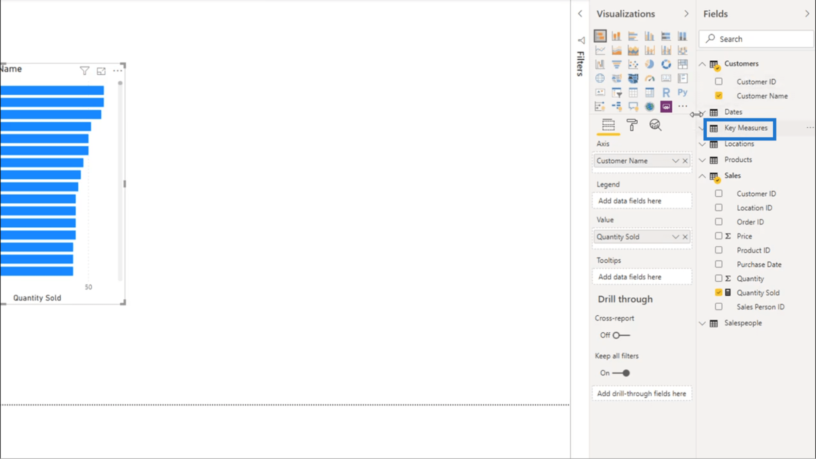 完成後,您會看到Quantity Sold現在位於我的Key Measures組下。