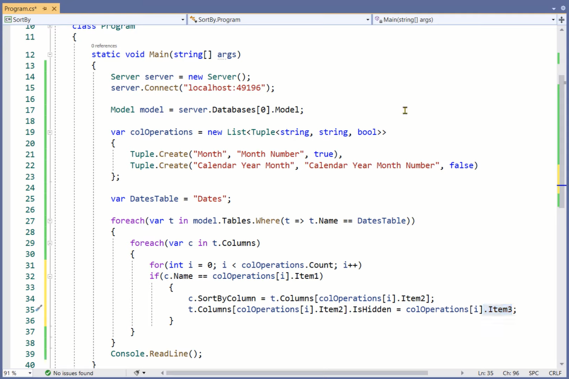 使用 C# 在 LuckyTemplates 和 SSAS 中對列進行排序