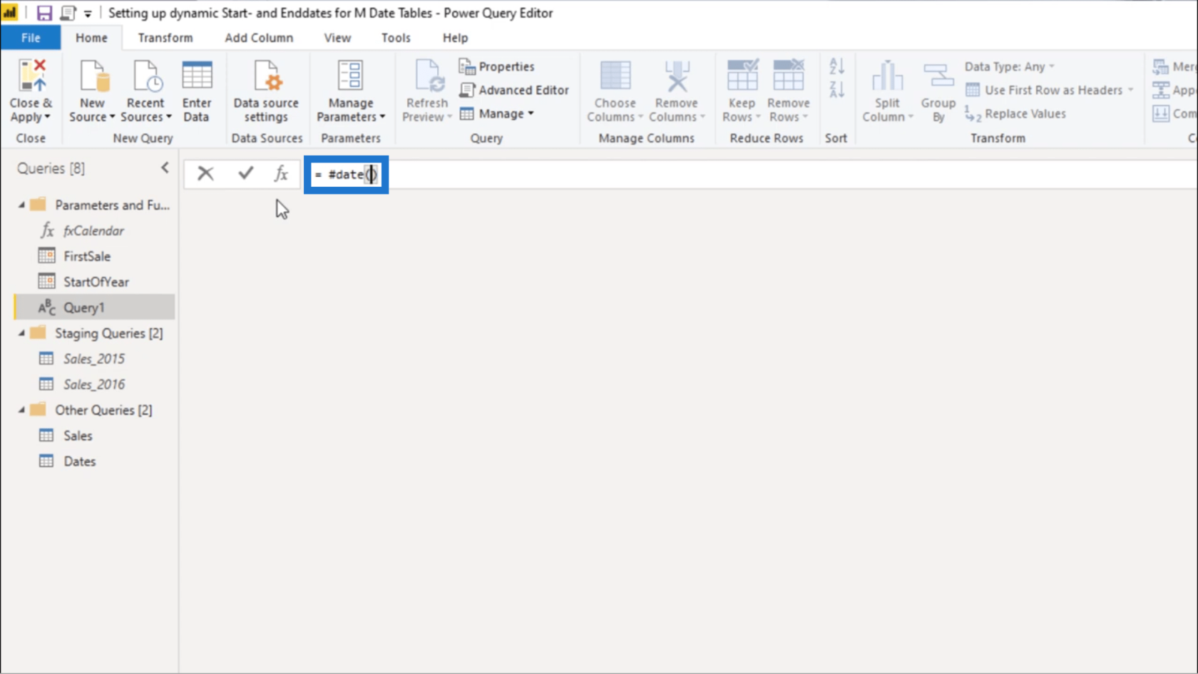 所以我將再次創建一個新查詢並使用#date,它是固有日期值。