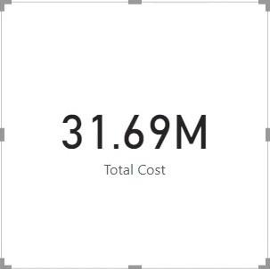 接下來,將度量拖到報告視圖中並將其轉換為卡片可視化。然後您可以看到總成本。