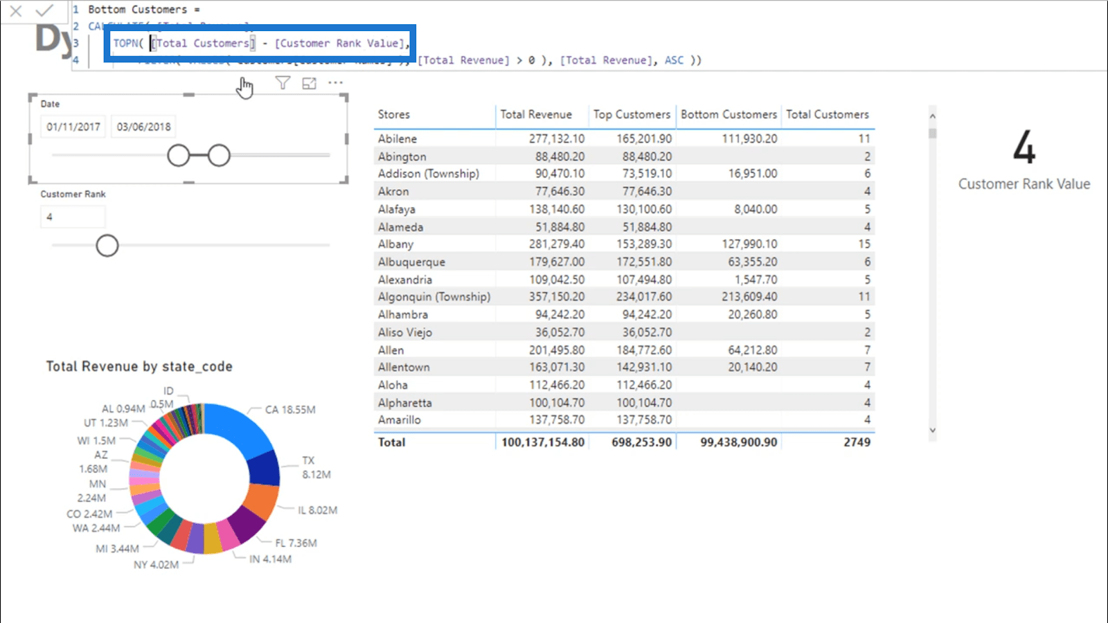 我通過使用總收入的函數創建了該列,然後使用作為排名函數。TOPN還根據排名結果返回一個虛擬表。