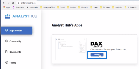 我們以公式 Sales LY 為例。我只是將其複制並粘貼到Analyst Hub 內的DAX Clean Up中。
