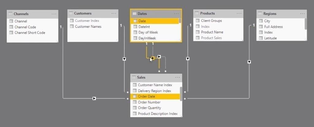 例如,讓我們檢查 2018 年 10 月 10 日的特定結果。在數據模型中,您可以看到過濾器從 Dates 表向下流到Sales表。