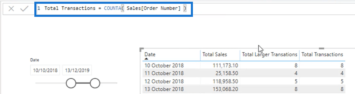 如果您查看Total Transactions的公式,它會使用函數。這只是使用 DAX 函數計算相同結果的另一種方法。