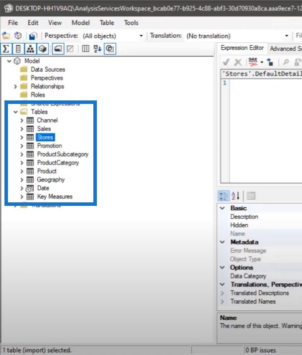 表格編輯器的妙處在於,您可以通過該工具訪問所有表格。例如,Channel、Sales 和 Stores 都在這裡。
