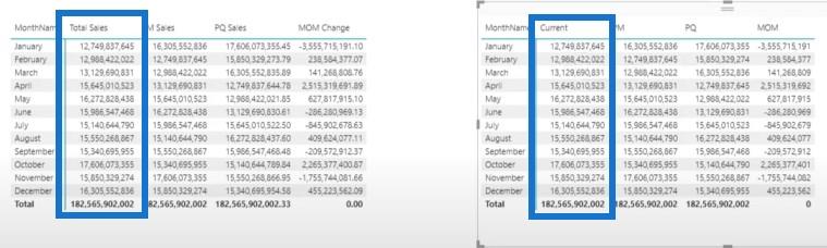 讓我們回到這兩張桌子。我們可以在第二個表中看到 Current 列。無論我們在現場部分放置什麼措施,它都會自動獲取。