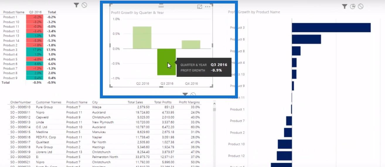 一旦我們將 Profit Growth 拖到表格中,它現在將反映增長,無論是擴張還是收縮。這很酷,對吧?