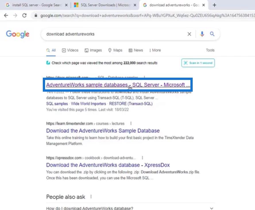 為了練習,我們可以下載微軟提供的AdventureWorks數據庫。只需轉到 Google 並蒐索“下載 adventureworks ”。