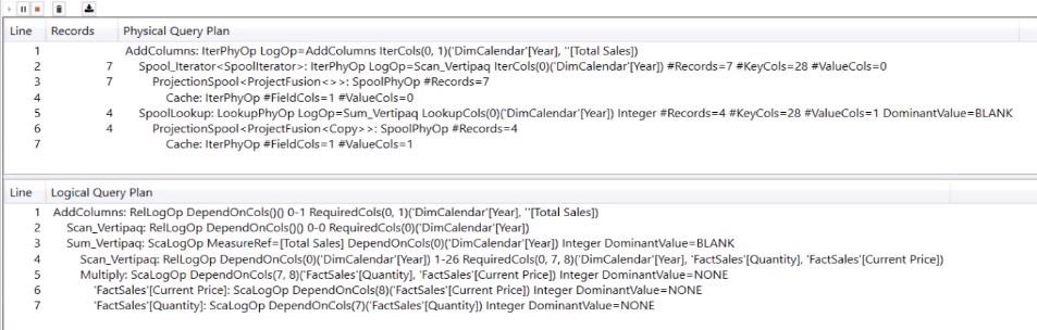 如果轉到查詢計劃選項卡,您將看到物理查詢和邏輯查詢計劃。這些都是關於公式引擎正在做什麼的公式查詢。