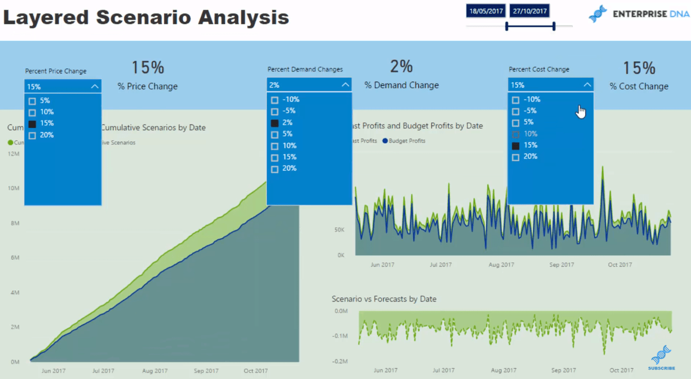 在本教程中,我將向您展示如何在 LuckyTemplates 中將多個“假設”分析或 場景分層,一個放在另一個之上。如果您有效地使用此技術,它將使您的分析輸出達到頂峰。您可以在本博客底部觀看本教程的完整視頻。