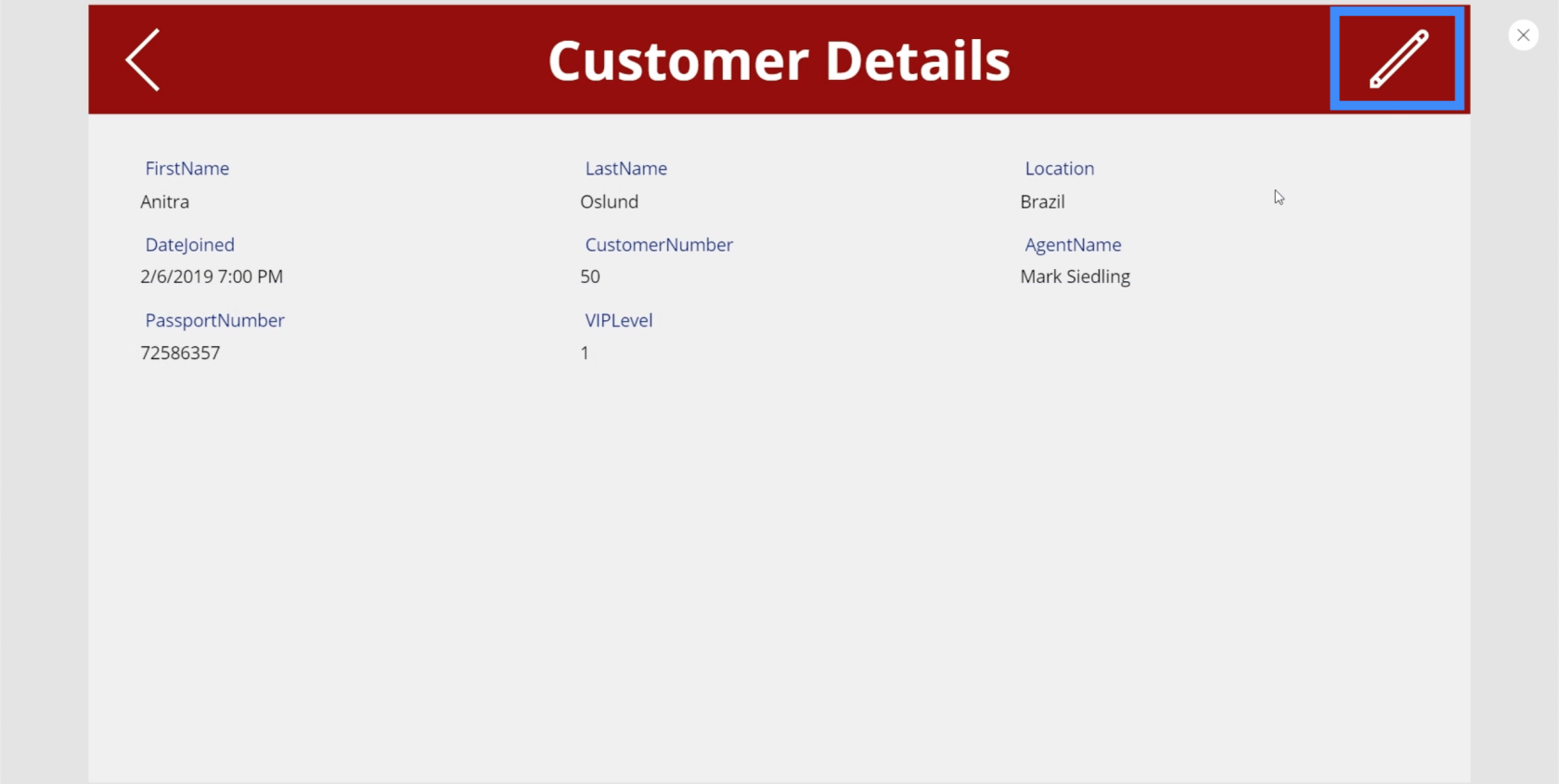 為了測試我們使用的新邏輯,讓我們轉到 Anitra 的不同記錄並單擊“編輯”圖標。