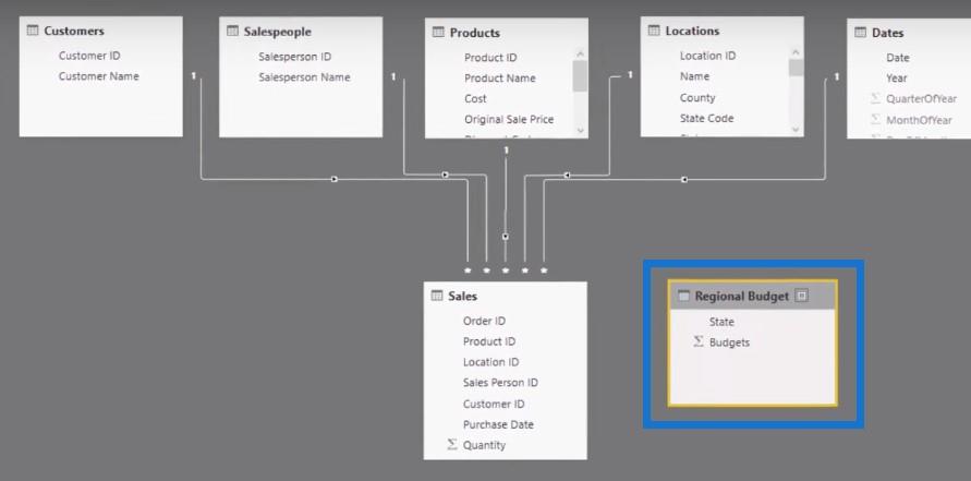 所以現在我們的區域預算表已經設置好了,我們現在可以將它與我們的其他數據一起可視化。