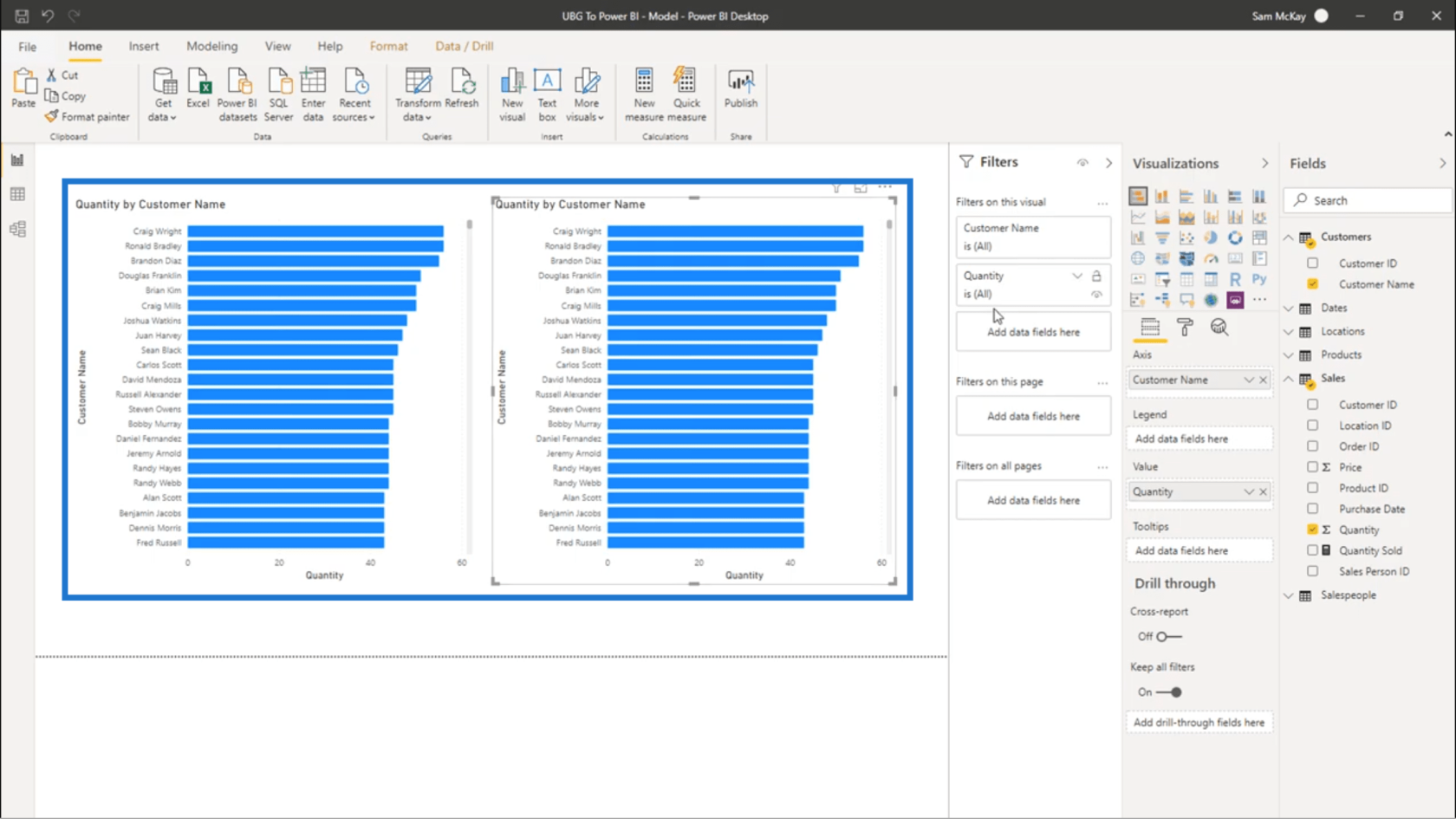 完成後,他們將獲得一個可視化效果,顯示銷售給特定客戶的產品數量。