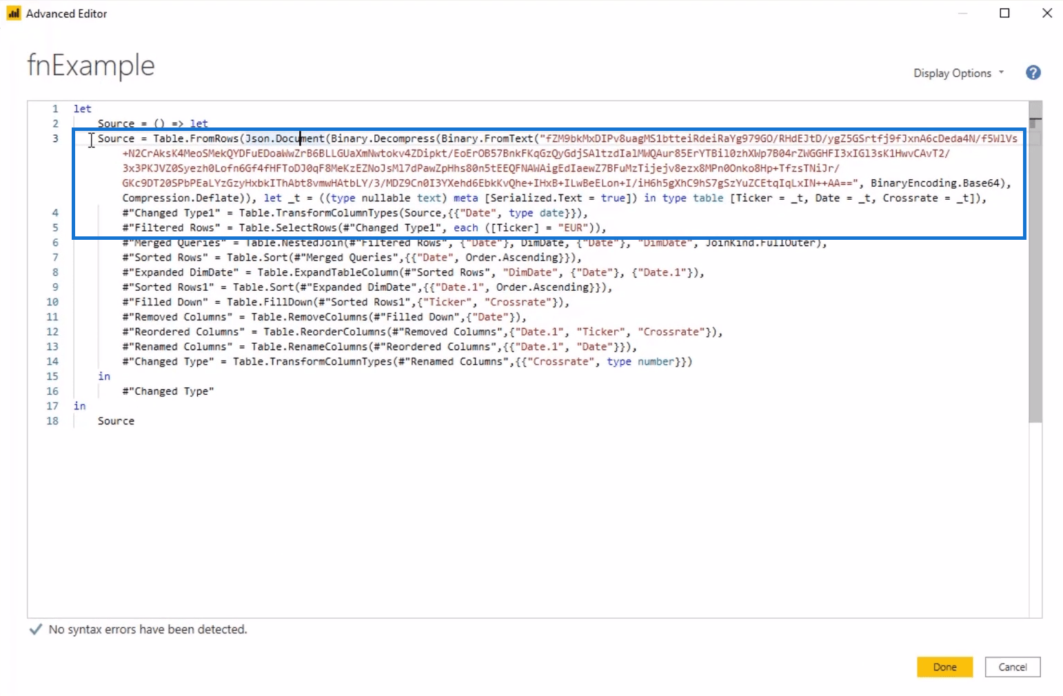 LuckyTemplates 中有一個叫做調用自定義函數的東西。這是一個帶有 FillMissingRates 的函數。