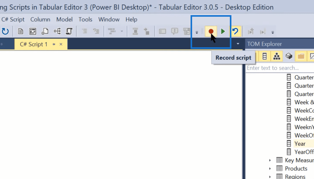 玩 C# 絕對值得,但我認為更常見的做法是使用現有腳本。有許多非常有用的存儲庫。TE3 文檔中有一整套有用的腳本片段庫,範圍從度量的創建到文檔的生成再到格式化、DAX 表達式、創建關係,以及可以直接應用於您的 TE3 版本的一整套腳本。