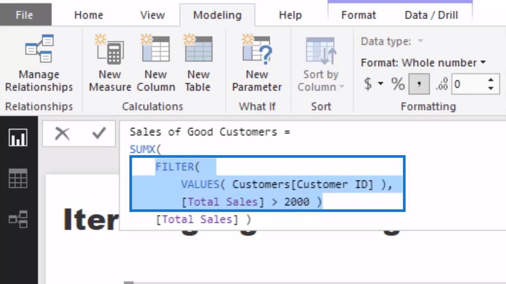 對於Good Customer Sales度量,我們使用函數而不是SUMX。