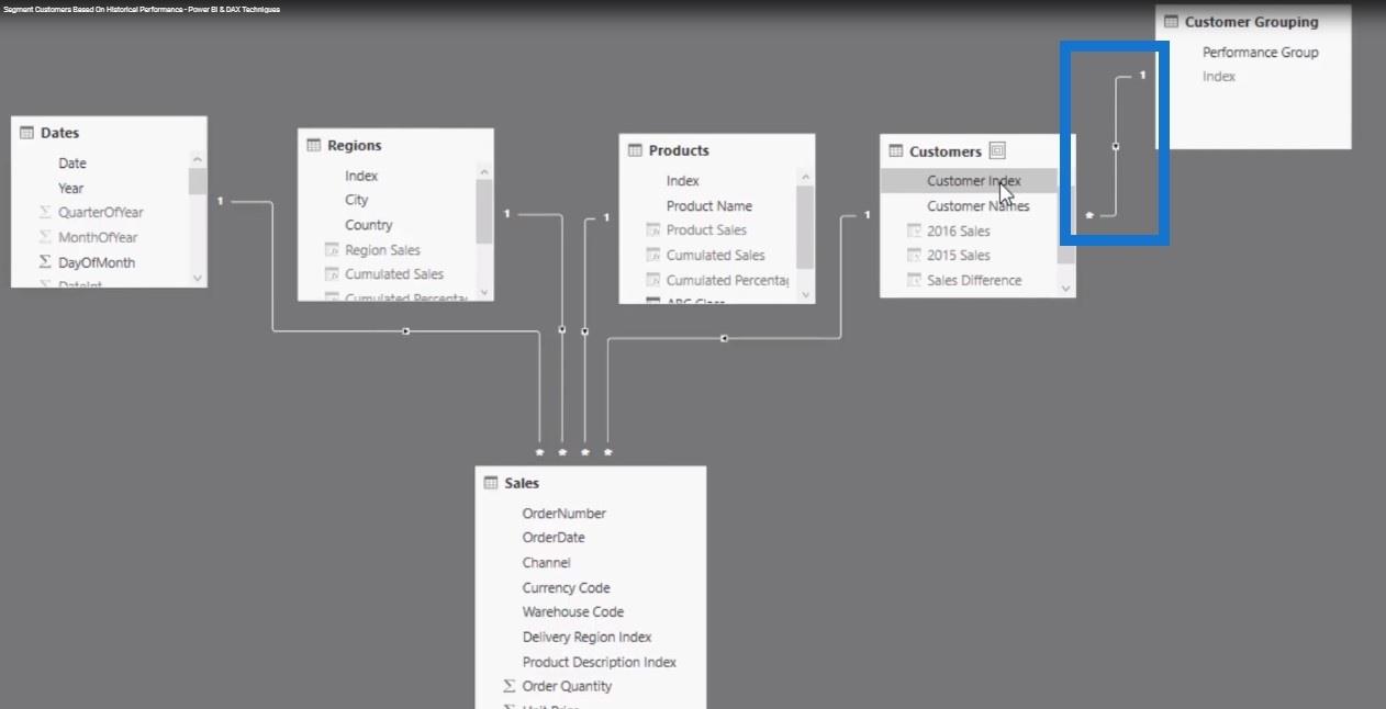 顯然,我們需要從Customer Grouping表向下連接到Customers表,因為我們需要以特定方式對客戶進行分組。