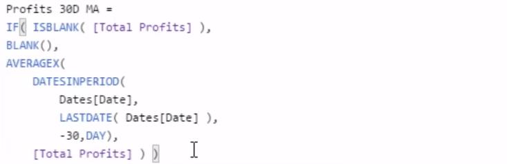 我們這裡確實有一個小問題需要解決。我們只希望我們的移動平均利潤到 2016 年的最後一天。要更正此問題,我們將再次使用IF ISBLANK並將其添加到我們的公式中。