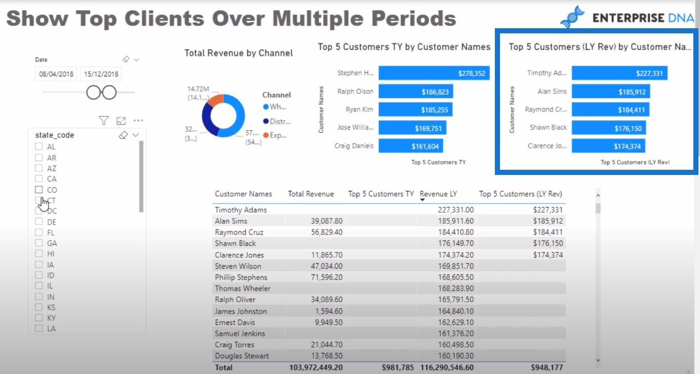 在今天的帖子中,我想向您展示一種使用 DAX 排名功能的獨特方式來展示您在多個時期的頂級客戶。您還可以觀看本文下方隨附的 LuckyTemplates 教程視頻以獲得更多幫助。您可以在本博客底部觀看本教程的完整視頻。
