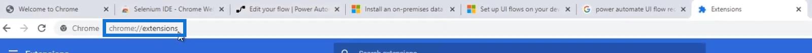 然後,我們將看到當前添加的擴展列表。我們需要 Microsoft Power Automate 中稱為Selenium IDE和UI 流的擴展。